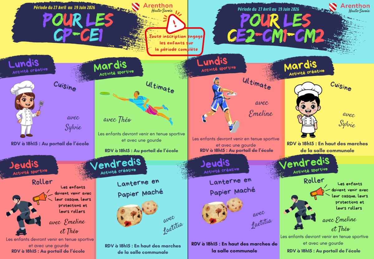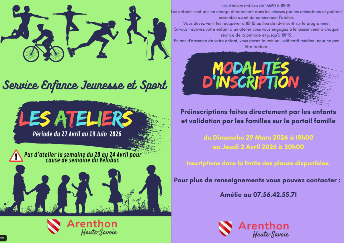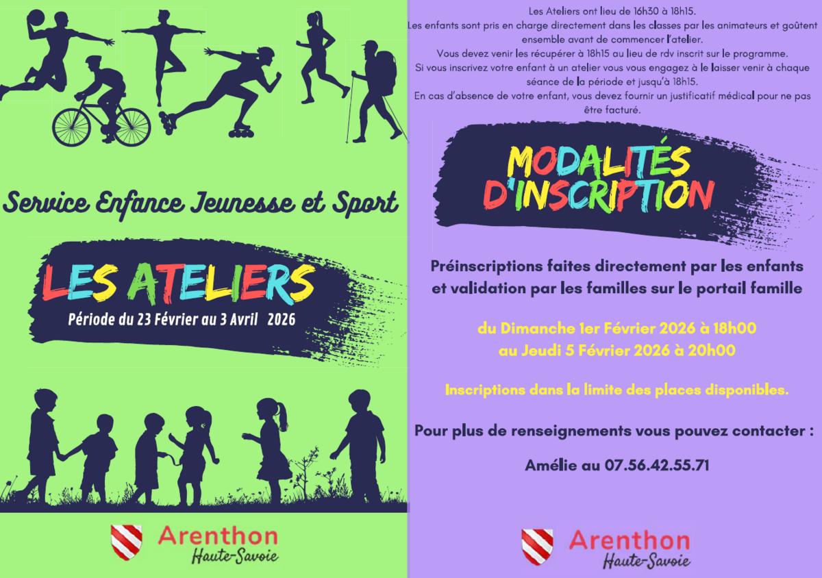 Durant le temps de l'accueil périscolaire du soir, le service Enfance Jeunesse et Sport propose les ATELIERS D'ARENTHON.