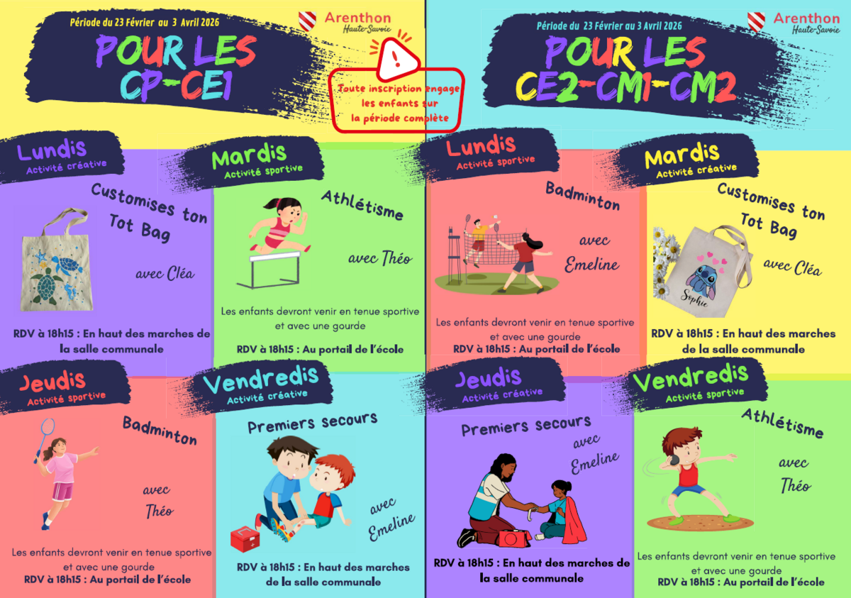Les Ateliers d'Arenthon se déroulent après l'école, à partir de 16h30.